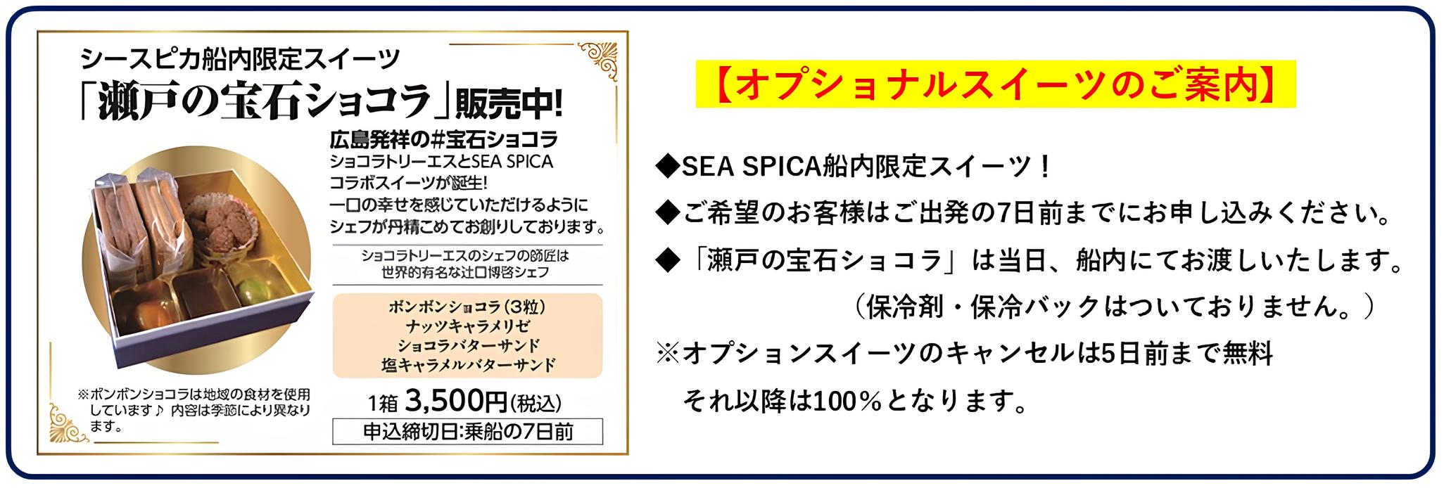 広島港(8:45発)~~<SEA SPICA>~~プリンスホテル前桟橋(8:53発)~~呉港(9:20発)~〇艦船クルーズ~〇音戸の瀬戸~〇安芸灘大橋~〇契島クルーズ~◎大久野島/約500羽のうさぎがお出迎え♪~~船内にて■むさし弁当の昼食~~尾道駅前桟橋==<貸切バス>==◎尾道さくらウォーク/日本さくら名所100選のお花見スポットのさくらウォーク/バス駐車場…展望台…文学の小道…千光寺…猫の細道…艮神社…バス駐車場【時間:約2時間 距離:約3.5km】=<貸切バス>=呉港(17:00着)==プリンスホテル前桟橋(17:50着)==広島港(18:00着)