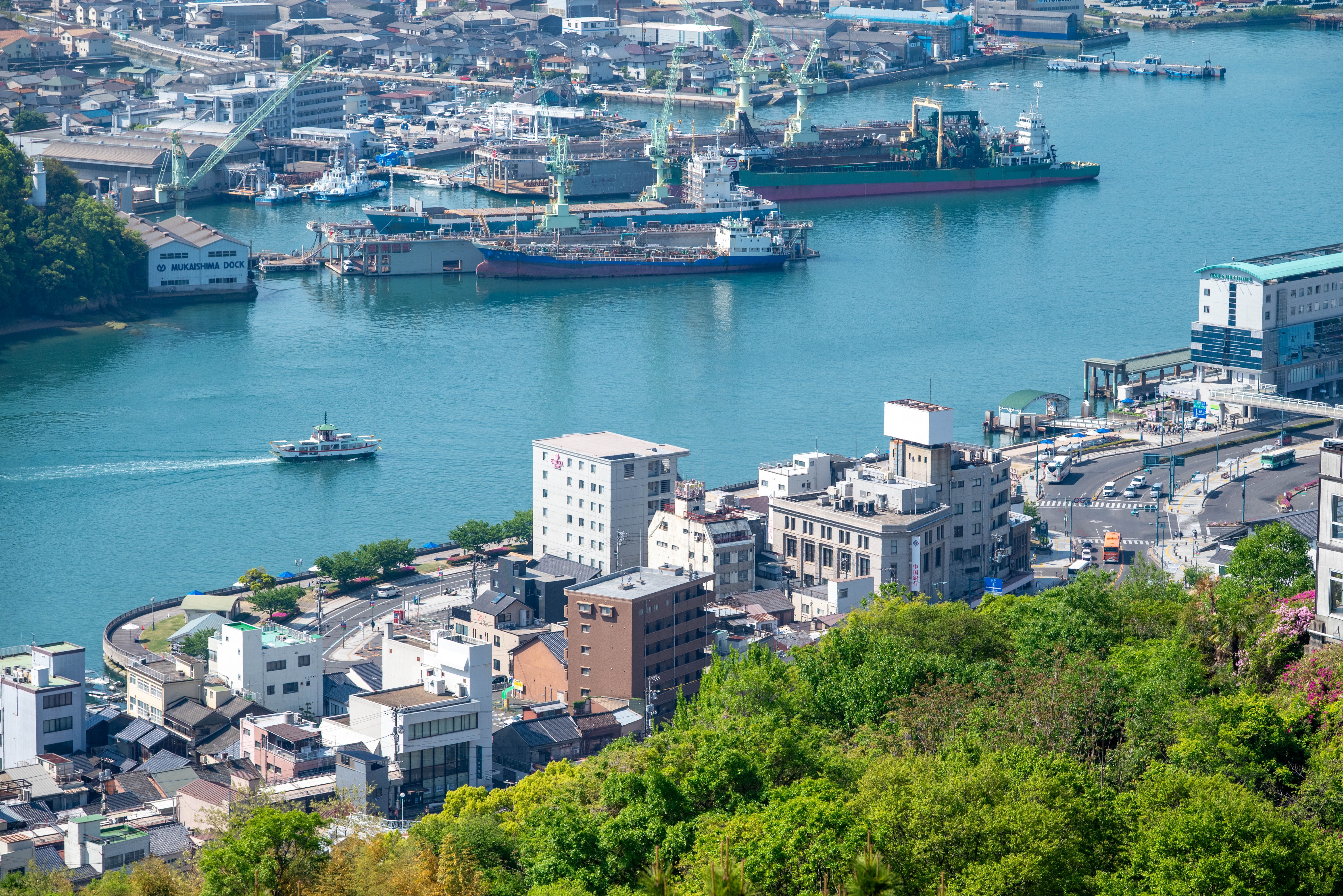 広島バスセンター(8:20発)==<フラワーライナー/高速乗り合いバス>==尾道駅前(9:54着)(10:00発)==<観光タクシー>==◎烏須井八幡神社(10:10着)願いが叶う?!お守り“願い玉”で有名な人気のパワースポット(10:30発)==◎千光寺公園(10:35着)尾道の街並みが一望できる展望台PEAKなど自由散策(11:35発)==尾道駅前(11:40着)・・・<SEA SPICAご乗船まで各自自由散策>・・・尾道駅前桟橋(13:45発)~~<SEA SPICA>~~<三原港経由>~~〇多々羅大橋~~〇大三島橋~~◎大崎下島・御手洗(15:30着)江戸時代から昭和初期までに建てられた歴史的建造物が多く点在する港町“御手洗地区”自由散策(16:20発)~~〇安芸灘大橋~~〇音戸の瀬戸~~〇艦船クルーズ~~呉港(17:35着)~~プリンスホテル前桟橋(18:02着)~~広島港(18:10着)
