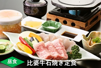 昼食には広島県庄原市を主産地とするブランド和牛”比婆牛”の石焼をお召し上がりください。
