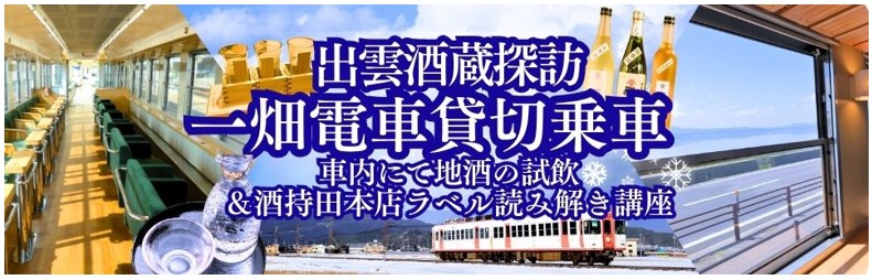 広島駅新幹線口(8:20)==アストラムライン古市駅(8:40)==三次駅前(9:50)== ☆田部竹下酒造・かけや酒蔵資料館(60分)==★酒持田本店 ●木綿街道(120分)== ~3種の利き酒講座~ 雲州平田駅<一畑電車貸切乗車と車内で地酒試飲(40分)>松江しんじ湖温泉駅== 三次駅前(18:00頃)==アストラムライン古市駅(19:20頃)==広島駅新幹線口(19:40頃) |