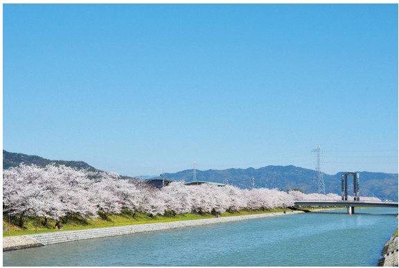 田布施川両岸に1.5キロにわたって約350本の桜並木がつづき、3月下旬から4月上旬には満開の桜が咲き乱れます!両岸に整備された桜の川土手を思い思いに散策いただけます!