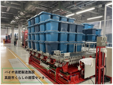 真庭市では、一般家庭から出る生ごみなどをメタン発酵させ液体肥料「バイオ液肥」として再生し地域内での資源循環を目指します。