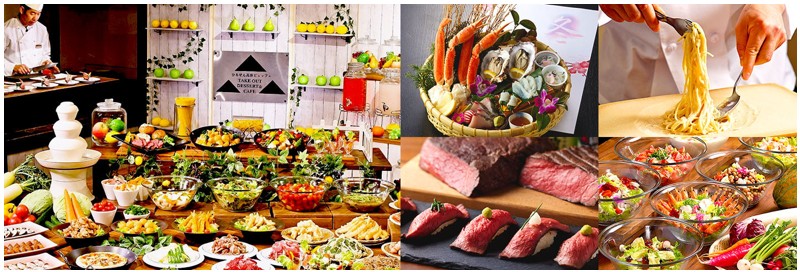 ホテルでの夕食は、ライブキッチンで提供される蒜山ジャージー牛の熟成生ハムやのどぐろ塩焼き、オリジナルの蒜山焼きそば、チーズフォンデュなどのご当地グルメをビュッフェ形式で楽しむことができます。