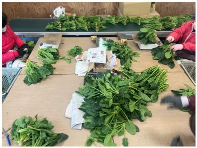 ★栄ファームでほうれん草収穫体験とパック詰め体験(60分)==●弁当の昼食(50分)==