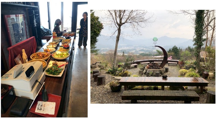昼食には地元で収穫した野菜等の旬の食材を使った日替わりの15品程度をバイキング形式でお楽しみください。