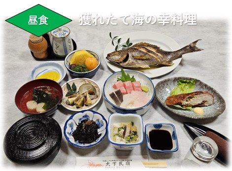 そんな風情ある町の民宿大下にて、獲れたての宇和海の海の幸を使った料理をお楽しみいただきます。