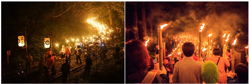 ※基本的にはたいまつ行列に参加になりますが、たいまつを持っての歩行に不安のある方は見学のみでも可能です。ご予約の際は、【行列に参加】か【見学のみ】かを必ずお選び下さい。見学のみの場合は炎の河が流れる景色全体を見ることができます。