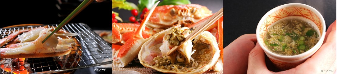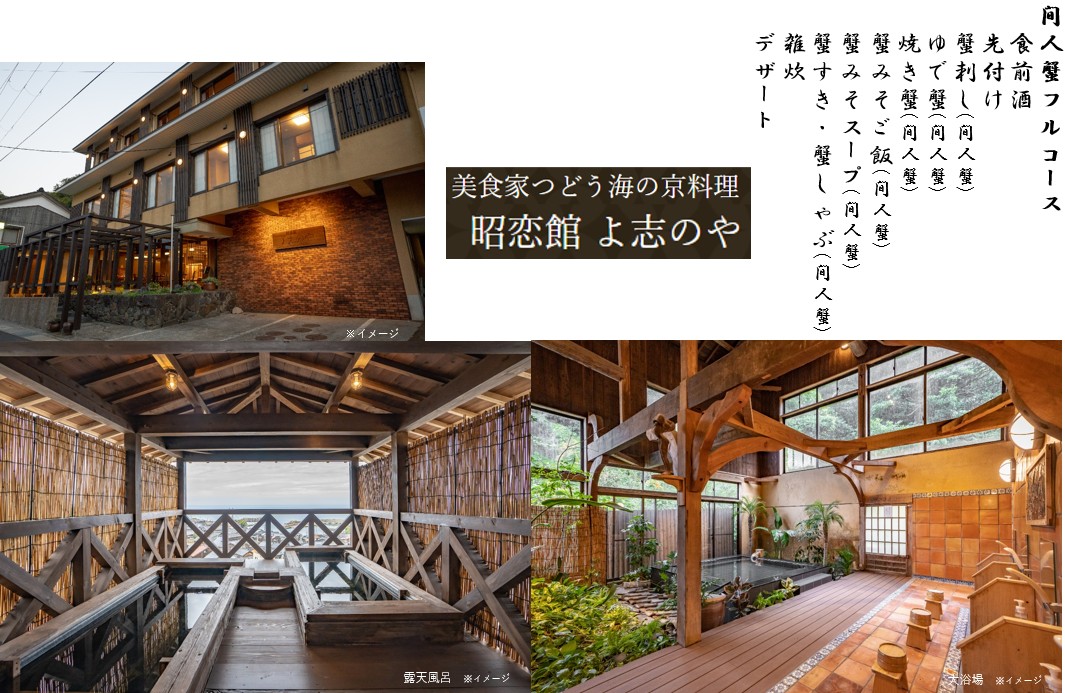 夕食は「京都府の現代の名工」に選ばれた「昭恋館 よ志のや」2代目経営者・福山勝彦氏が考え出した、カニのうまみ最高に引き出す「間人ガニ」のフルコースをご堪能ください。