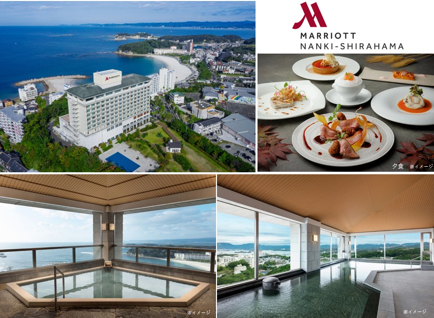 太平洋の絶景を望む高台に位置する南紀白浜マリオットホテル。全室42平米のゆとりある客室、南紀の恵みを堪能できるレストラン、ホテル最上階の露天風呂など、インターナショナルホテルならではの洗練された空間とおもてなしをご提供いたします。