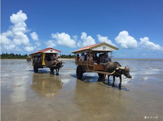 〈八重山3島めぐりへご案内〉 ホテル=石垣港~(船にて約45分)~大原港着==★仲間川ボート乗場~<仲間川マングローブクルーズ>~仲間川ボート乗場==美原 ・・・<干潟を水牛車にて約15分>・・・★由布島植物園(●昼食:離島ならではの彩どりビュッフェ)・・・<水牛車>・・・美原==大原港~(船にて約45分)~竹富港=竹富島内フリータイム=竹富港~(船にて約15分)~石垣港==石垣島内(泊) |