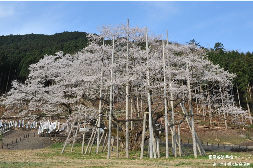 継体天皇お手植えの桜と伝えられ、薄いピンクのつぼみが、満開になれば白に、そして散り際には淡い墨色になることから淡墨桜と名付けられたと言われています。
