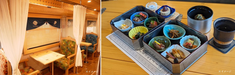 長良川の沿線風景に映えるロイヤルレッドの車体に、内装は岐阜県産の木材をふんだんに使用した明るい空間。