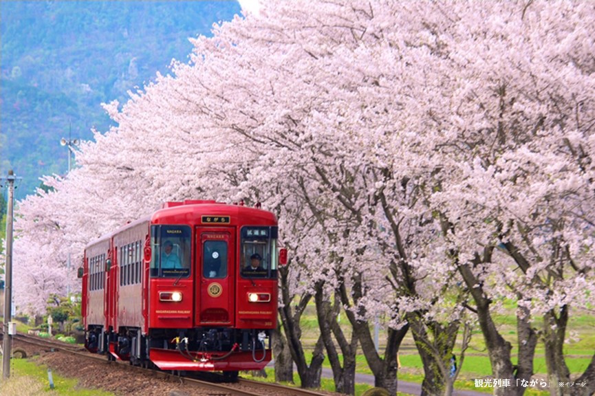 車窓から移り変わる濃淡様々な桜に彩られた長良川沿いの景色をお楽しみください。