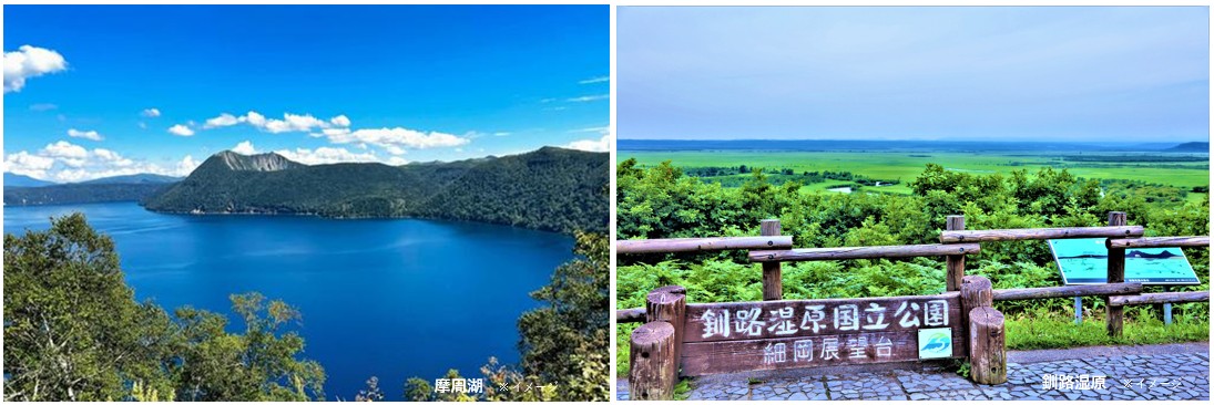 ●神秘の湖『摩周湖』第一展望台からは360度パノラマで霧が無ければ北海道遺産の摩周湖を展望出来ます。●釧路湿原は、深い霧に包まれながら、瑞々しい新緑の季節を迎えます。7月に入ると湿原全体が鮮やかなエメラルドグリーンに染まり、風にそよぐヨシやスゲの音が心地よく響きます。生命力にあふれた「生きた大地」の鼓動を、五感すべてで体感できるベストシーズンです。