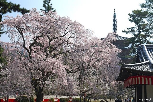平安時代から「花の醍醐」と呼ばれる桜名所。豊臣秀吉が「醍醐の花見」を行ったことでも知られています。河津桜から始まり、しだれ桜、ソメイヨシノ、山桜、八重桜など様々な桜が順に咲き誇ります。