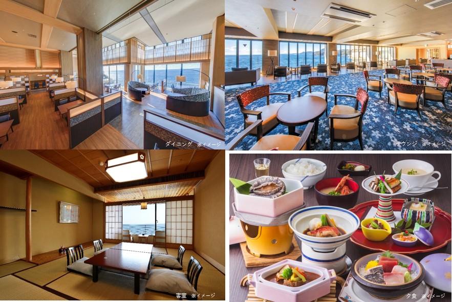 ◆解放感あるオーシャンビューの展望露天風呂で、湯量豊富な自家源泉の温泉をお楽しみください。