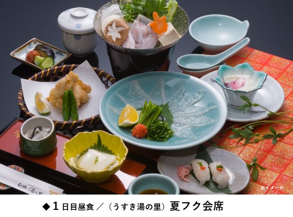 ●臼杵はふぐの名産地。ふぐが新鮮なうちに料理をすることが臼杵流です。生きたふぐの身は薄引きが難しいため、肉厚な刺身は歯ごたえと食感を楽しめます。旬を迎える臼杵ふぐを刺身や鍋などでご堪能ください。