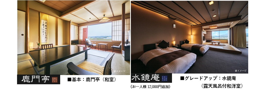 ※満80歳以上の方は、2名様以上でお申込みください。 ※花の見頃時期は天候により変わる場合がございます。予めご了承ください。 ※2泊目宿泊において、グレードアップ(水鏡庵)3名1室・4名1室の場合:正ベッド2台と3人目の方から畳にお布団のご用意となります。 |