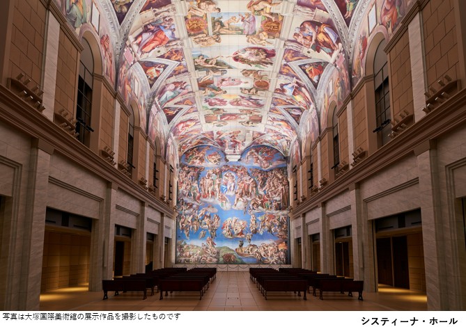 約4kmに及ぶ鑑賞ルートには、世界26カ国190余の美術館が所蔵する約1,000点の世界の名画が、特殊技術によって原寸大に再現された陶板が展示されています。古代遺跡や礼拝堂を現地の空間そのままに再現した展示や、ミケランジェロ、レオナルド・ダ・ヴィンチ、モネ、ゴッホ、ピカソなどの名画など、日本に居ながらにして世界の美術館が体験できます。