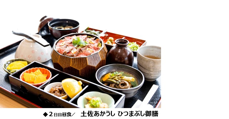 ホテル=☆桂浜=☆にこ淵=●さめうら荘レイクサイホテル(昼食:土佐あかうし ひつまぶし御膳)=【車窓】早明浦ダム=○道の駅土佐さめうら=福山SA(16:50)=広島駅新幹線口(18:20) |