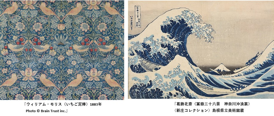 「ウィリアム・モリス《いちご泥棒》と葛飾北斎《冨嶽三十六景 神奈川沖浪裏》