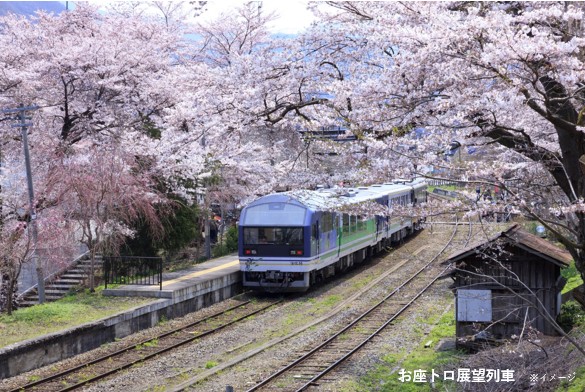 2日目には、西若松駅から湯野上温泉駅までの約40分間、沿線に咲く桜や茅葺き屋根の懐かしい景観を楽しむことが出来る会津鉄道『お座トロ展望列車』を貸切乗車!!