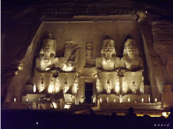 早朝:航空機にてアスワン(注2)へ✈✈ 着後、バスでアブシンベルへ 午後:アブシンベル神殿の見学。夕方、神殿近くのホテルにチェックイン 夜、アブシンベル神殿「音と光のショー」へ |