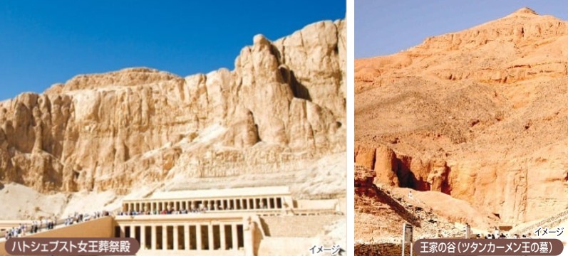 午前:ルクソール西岸の観光へ メムノンの巨像、ハトシェプスト女王葬祭殿、王家の谷(ツタンカーメン王の墓)の見学 午後:ルクソ-ルから航空機でカイロへ(注2) 夕方:カイロ到着後、ギザ周辺のホテルにチェックイン |