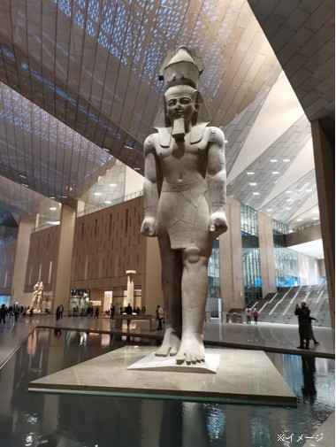午前:大エジプト博物館の見学へ(注1) 午後:三大ピラミッドを遠望できる写真スポット、スフィンクス、河岸神殿へご案内します |