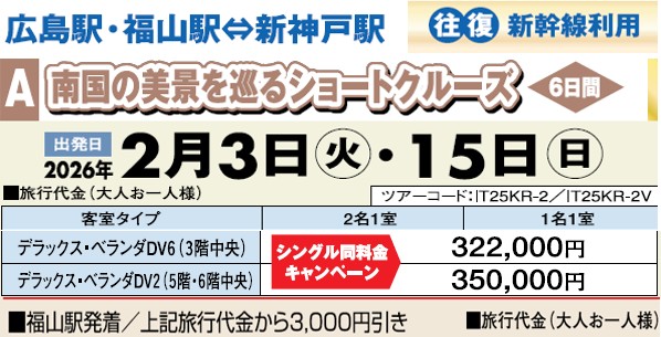• 出発地 / 広島駅・福山駅~新神戸駅/神戸港(※各自で神戸港へ移動)