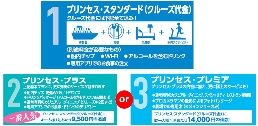 クルーズ代金に加え、ドリンクパッケージや高速Wi-Fiなどが含まれるお得なプランです。