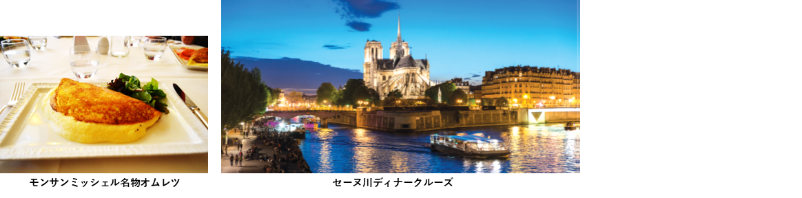 ■パスポートの残存有効期間はフランス出国予定日より3ヶ月以上が必要です。 ■満80歳以上の方は、2名様以上でお申込みください。 ※ビジネスクラスへの変更は旅行代金にお一人様700,000円追加(お申し込み後の手配となります) ※3名1室の設定はありません。 ※2名1室のご利用もベッド1台の部屋になる場合があります。 ※お部屋によってはシャワーのみの場合もあります。 ※パリでは宿泊税としてお一人様1泊につき€8.45が別途必要です ※ルーアンではCity Taxとしてお一人様1泊につき€2.35が別途必要です。 ※モンサンミッシェルでは宿泊税としてお一人様1泊につき€1.80が別途必要です。 ●催行判断は1ヶ月前頃になります。尚、最少催行人員に満たない場合は催行中止となります。 催行決定の際、燃油サーチャージ、及び海外空港税の確定料金をご案内いたします。 |