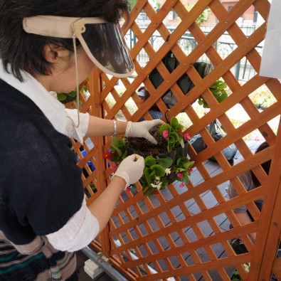 ハンギングバスケット作成には、係員が丁寧に説明します。